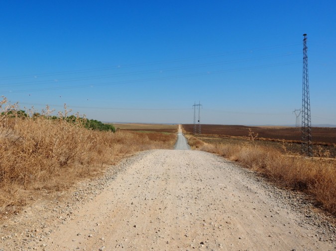 Za krajem Santipoce je vendarle izginil asfalt in pot zavije na makadam in najprej pomislim da je pred mano meseta med Burgosom in Leonom. Desno je polje, levo je polje, vmes cesta, ki ji ni videti konca.